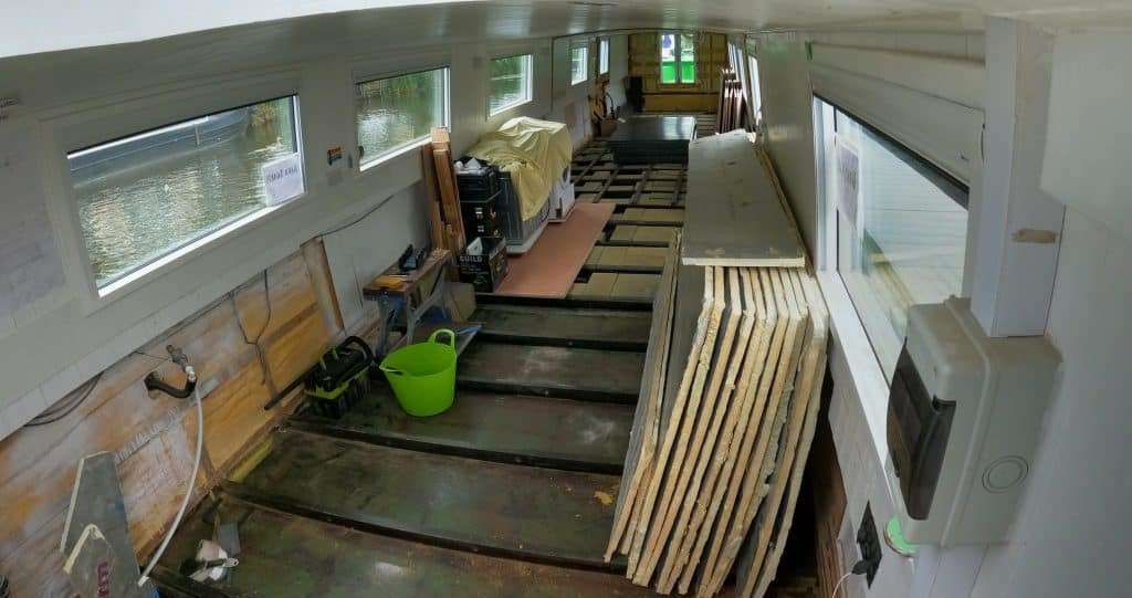 Most narrowboats have a base of treated 18mm marine plywood laid across the boat’s steel transverse bearers or “ribs” as I like to refer to them. However, we’re all about longevity, sustainability, cost-saving, time-saving, materials reuse and insulation in our rebuild… a tall order! Firstly, let’s look at why we…